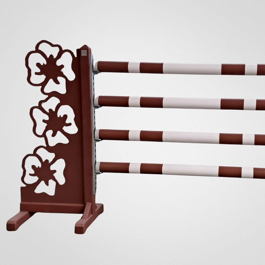 Die Holzhindernisse aus unserem Sortiment sind ideal für nationale und internationale Springturniere. Ihr Design ermöglicht einen vielseitigen Einsatz, sowohl als Stand- als auch als Hängehindernis, das mit verschiedenen Hindernissen kombiniert werden kann. Die Holzausbrüche sind 180 cm hoch und 70 cm breit. Die Länge der Einsätze kann zwischen 300 und 350 cm variieren. Als Hauptmaterial für die Hindernisse wird hochwertiges, behandeltes Kiefernholz verwendet, während die Einsätze aus wasserfest verleimten Schichtholzplatten bestehen, die Haltbarkeit und Ästhetik gewährleisten.
